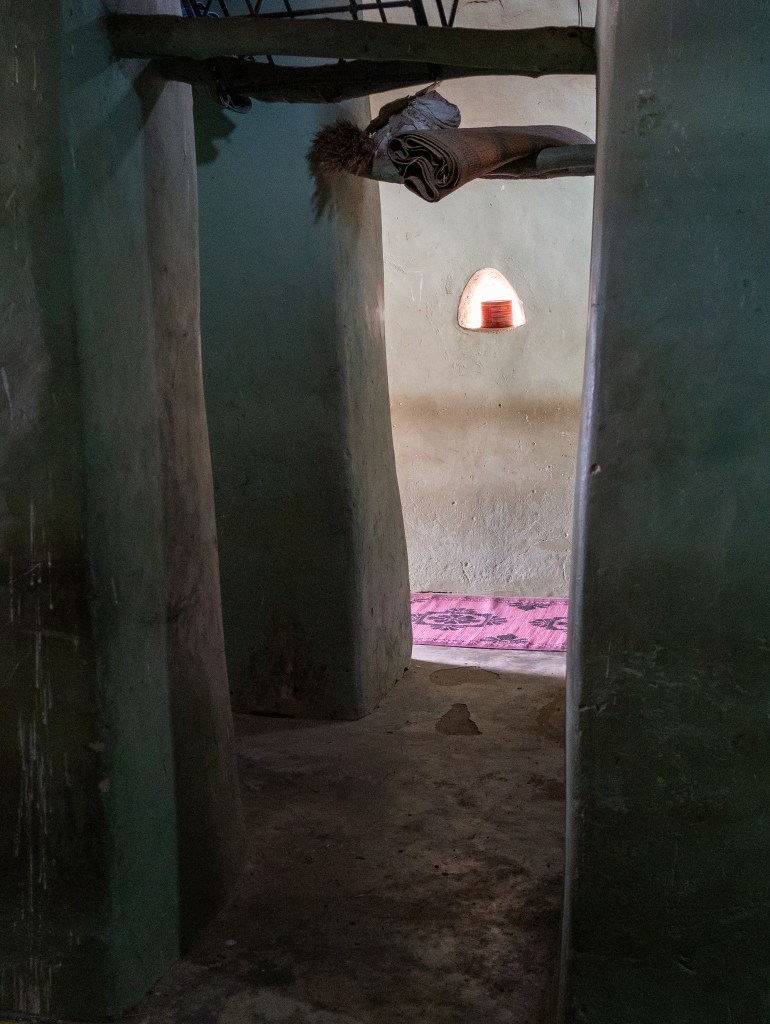 …almost all sensorial stimulation is eliminated by two foot-thick earthen walls and minimal window and door openings, which collectively isolate the individual from the profane environment so as to maximise communion with the divine.